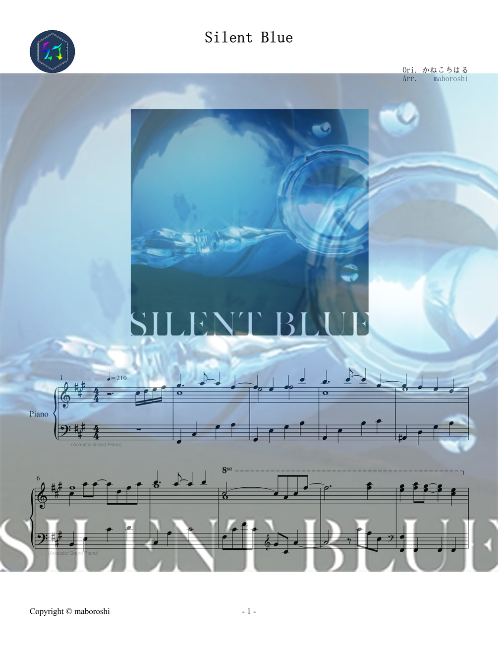 《SILENT BLUE》| 唯美又動感的音遊歌曲 | かねこちはる (Kaneko chiharu) / Piano sheet